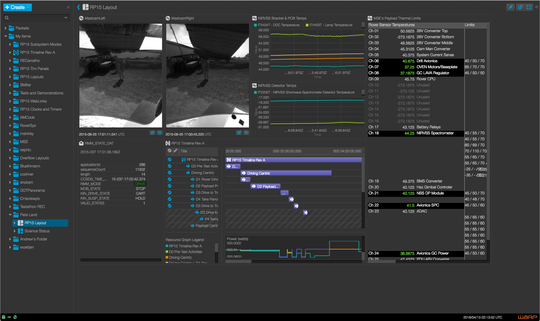 Open MCT позволяет в одном сводном интерфейсе отображать потоки как поступающих в данным момент, так и уже полученных данных (анализ истории), оценивать состояние датчиков, выводить изображения с камер, выполнять навигацию по событиям с использованием шкалы времени, визуализировать любую информацию, использовать разные представления телеметрии (таблицы, графики, диаграммы и т.п.). Оператор может быстро переключаться между разными обработчиками и представлениями данных, менять размер областей, компоновать собственные представления в визуальном редакторе, перемещать элементы в режиме drag&drop. Платформа очень гибкая и при помощи плагинов может адаптироваться для различных применений, форм представления информации, типов и источников данных.