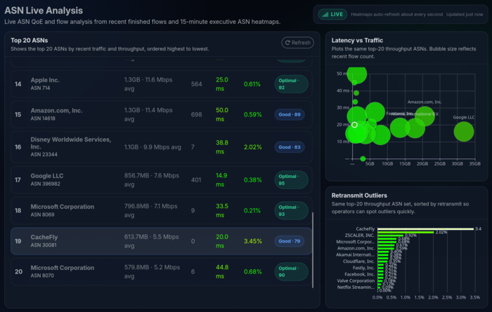 • Добавлены новые режимы визуализации карт и потоков трафика, добавлен анализатор автономных систем (ASN Analysis).