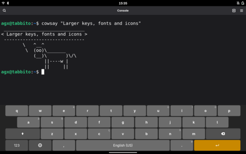 В экранной клавиатуре Stevia реализована поддержка масштабирования области ввода и пиктограмм клавиш для использования всего горизонтального пространства при работе в ландшафтом режиме или на больших экранах.