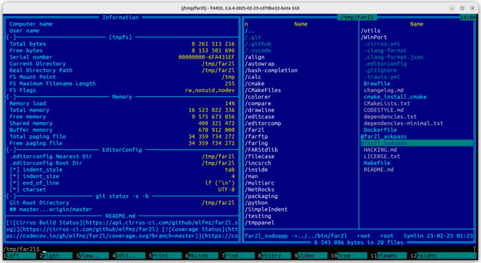 Опубликована новая версия far2l 2.7.0, порта файлового менеджера Far Manager для Linux, macOS и BSD-систем. Проект продолжает развиваться, становясь всё более зрелой и удобной альтернативой для тех, кто привык к двухпанельному интерфейсу в мире *nix. Код проекта написан на C/C++ и распространяется под лицензией GPLv2.