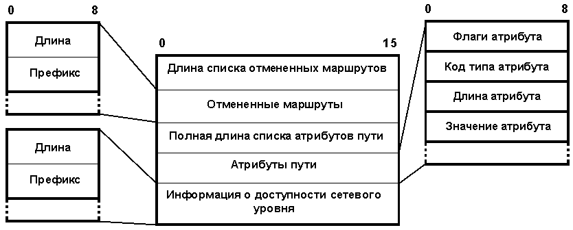 Сообщения типа UPDATE используются для передачи маршрутной информации