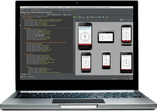 Новая среда разработки отличается оптимизацией выполнения типовых задач, решаемых в процессе разработки приложений для платформы Android. В том числе в среду включены средства для упрощения тестирования программ на совместимость с разными версиями платформы и инструменты для проектирования приложений, работающих на устройствах с различными разрешениями экрана (планшеты, смартфоны и ноутбуки). В настоящее время доступен (http://developer.android.com/sdk/installing/studio.html) лишь первый предварительный выпуск Android Studio, но в будущем Google планирует использовать данное приложение в качестве первичной среды разработки, которая заменит собой плагин ADT для платформы Eclipse.Помимо возможностей (http://www.opennet.me/opennews/art.shtml?num=35522), присутствующих в IntelliJ IDEA, в Android Studio реализовано несколько дополнительный функций, таких как новая подсистема сборки, тестирования и развёртывания приложений, основанная на сборочном инструментарии Gradle (http://www.gradle.org/) и поддерживающая использование средств непрерывной интеграции. Для ускорения разработки приложений представлена коллекция типовых элементов интерфейса и визуальный редактор для их компоновки, предоставляющий удобный предпросмотр оформления различных состояний интерфейса приложения (например, можно посмотреть как интерфейс будет выглядеть для различных версий Android и для различных размеров экрана). Для создания нестандартных интерфейсов присутствует мастер создания собственных элементов оформления, поддерживающий использование шаблонов.