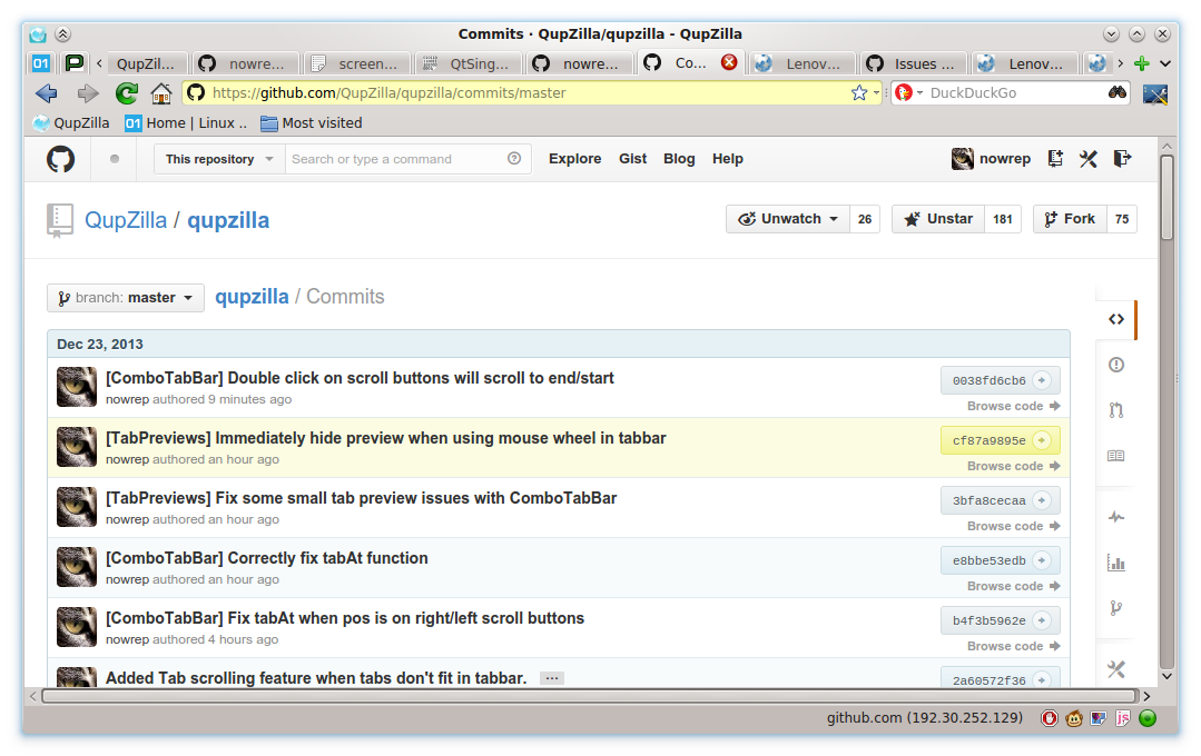 Доступен (http://blog.qupzilla.com/2014/01/qupzilla-160-released.html) релиз многоплатформенного web-браузера QupZilla 1.6.0 (http://www.qupzilla.com/), построенного с использованием библиотеки Qt и браузерного движка WebKit (QtWebKit). Основной целью проекта QupZilla является создание полнофункционального браузера, поддерживающего лучшие возможности Firefox, Opera и Chrome, но потребляющего при этом значительно меньше ресурсов. Первостепенное внимание уделяется экономии потребления памяти, обеспечению высокого быстродействия и поддержанию отзывчивости интерфейса. Исходные тексты QupZilla распространяются (https://github.com/nowrep/QupZilla) под лицензией GPLv3. Бинарные сборки доступны (http://www.qupzilla.com/download) для большинства дистрибутивов Linux, а также для Windows, OS/2 и Haiku OS.