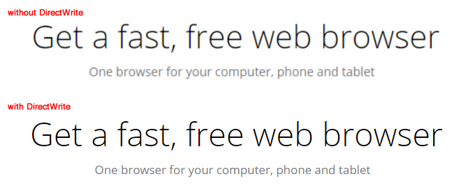 - Поддержка технологии DirectWrite (http://msdn.microsoft.com/en-us/library/windows/desktop/dd36...).aspx) для ускорения и увеличение качества отрисовки шрифтов на платформах Windows 7 и Windows 8. До этого вывод осуществлялся через подсистему GDI (Graphics Device Interface), что создавало проблемы при работе на экранах очень высокого разрешения (по сути изображение формировалось с разрешением 1600x900 с последующим масштабированием до реального разрешения экрана);