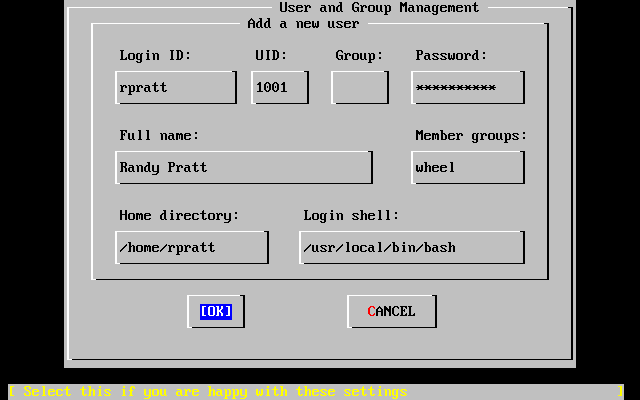 Yes [ No ]Если выбрана [ No ], различные сервисы, такие как telnetd не будут запущены. Это означает, что удаленные пользователи не смогут зайти по telnet на этот компьютер. Локальные пользователи все же смогут заходит на удаленные компьютеры по telnet.