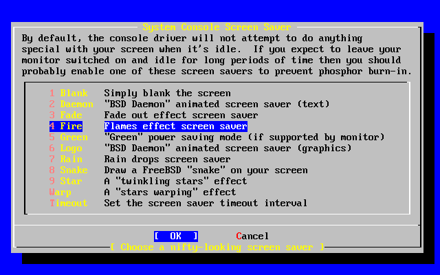 rc.i386 configuring syscons: blank_time screensaver moused.
