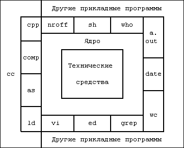 Схема на Рисунке 1.1. Обращения к операционной системе выглядят так же, как обычные вызовы функций в программах на языке Си, и библиотеки устанавливают соответствие между этими вызовами функций и элементарными системными операциями, о чем более подробно см. в главе 6. При этом программы на ассемблере могут обращаться к операционной системе непосредственно, без использования библиотеки системных вызовов. Программы часто обращаются к другим библиотекам, таким как библиотека стандартных подпрограмм ввода-вывода, достигая тем самым более полного использования системных услуг. Для этого во время компиляции библиотеки связываются с программами и частично включаются в программу пользователя. Далее мы проиллюстрируем эти моменты на примере.