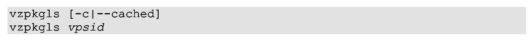 Если Вы определяете ID VPS для этой команды, то vzpkgls составляет список шаблонов, относящихся к VPS. Без vpsid аргумента, утилита перечислит лишь шаблоны, доступные для VPS на Hardware Node. Другие опции, доступные для vzpkgls перечисляются ниже: