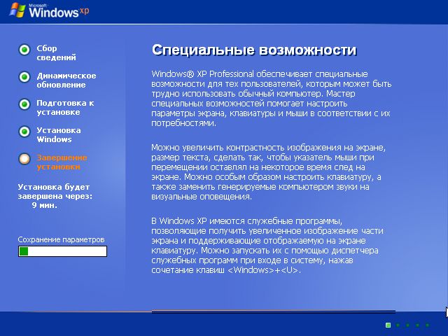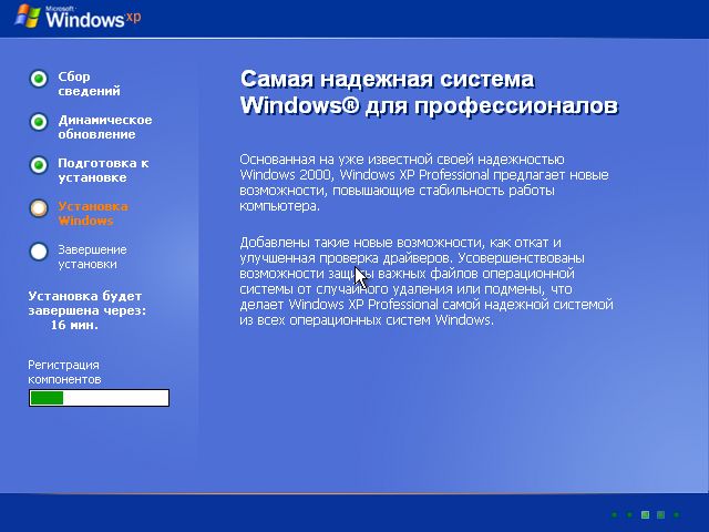установка компонент Windows XP |
