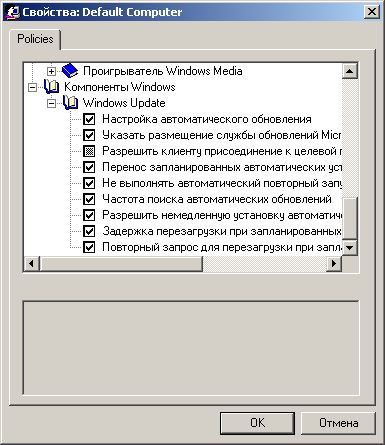 [Data] AutoPartition="1" MsDosInitiated="1" UnattendedInstall="Yes" floppyless="1" OriSrc="\\%SERVERNAME%\RemInst\%INSTALLPATH%" OriTyp="4" LocalSourceOnCD=1 [SetupData] ; параметры запуска Windows с tftp OsLoadOptions="/noguiboot /fastdetect" ; откуда будет происходить сетевая установка SetupSourceDevice = "\Device\LanmanRedirector\%SERVERNAME%\RemInst\wxp-pro.rus" [GuiUnattended] AdminPassword=04764ffa20b75a4de8a1028ae36ad3b435b51404e78ddb5d3190aad3b435b514 EncryptedAdminPassword=Yes OEMSkipRegional=1 TimeZone=145 OemSkipWelcome=1 [Unattended] AutoActivate=No CrashDumpSetting=0 ; устанавливать драйвера без подписи DriverSigningPolicy=Ignore UpdateInstalledDrivers=Yes FactoryMode=No FileSystem=LeaveAlone Repartition=Yes ; путь поиска дополнительных драйверов при определении PNP устройств во время установки Windows OemPnPDriversPath="windows\drv\chipset\intel;windows\drv\net\intel;windows\drv\video\intel8;windows\drv\video\intel9;windows\drv\audio" OemPreinstall=Yes OemSkipEula=Yes TargetPath=\windows UnattendMode=FullUnattended UnattendSwitch=Yes WaitForReboot=No NoWaitAfterTextMode=1 NoWaitAfterGUIMode=1 ConfirmHardware=Yes NtUpgrade=No OverwriteOemFilesOnUpgrade=No [Display] BitsPerPel=16 Xresolution=800 YResolution=600 [PCHealth] ; не слать отчеты об ошибках ER_Display_UI=0 ER_Enable_Applications=None ER_Enable_Kernel_Errors=0 ER_Enable_Reporting=0 ER_Enable_Windows_Components=1 ER_Force_Queue_Mode=0 ER_Include_MSApps=0 ER_Include_Shutdown_Errs=0 ; включить удаленный помощник RA_AllowFullControl=1 RA_AllowToGetHelp=1 RA_AllowUnsolicited=1 RA_MaxTicketExpiry=28800 [RegionalSettings] LanguageGroup=1,5,2 Language=00000419 SystemLocale=00000419 UserLocale=00000419 UserLocale_DefaultUser=00000419 InputLocale=0409:00000409,0419:00000419 InputLocale_DefaultUser=0409:00000409 [Shell] DefaultStartPanelOff=Yes DefaultThemesOff=Yes [TapiLocation] CountryCode=7 Dialing=Tone AreaCode=8212 LongDistanceAccess="0" [TerminalServices] ; разрешить RDP AllowConnections=1 [UserData] ProductKey=XXXXX-XXXXX-XXXXX-XXXXX-XXXXX FullName="anonymous" OrgName="anonymous" ; случайным образом выбирать имя компьютера - мы поменяем его на рельное при окончании установки ComputerName=* [URL] AutoConfig=1 [Identification] JoinWorkgroup=komi [Networking] ProcessPageSections=Yes InstallDefaultComponents=No [NetAdapters] Adapter1=params.Adapter1 [params.Adapter1] ConnectionName="MTS Komi network" INFID=* [NetClients] MS_MSClient=params.MS_MSClient [NetServices] MS_SERVER=params.MS_SERVER [NetProtocols] MS_TCPIP=params.MS_TCPIP [params.MS_TCPIP] ; DNSDomain=komi.mts.ru DNS=Yes UseDomainNameDevolution=No EnableLMHosts=No AdapterSections=params.MS_TCPIP.Adapter1 [params.MS_TCPIP.Adapter1] SpecificTo=Adapter1 DHCP=Yes WINS=No NetBIOSOptions=0 ; компоненты Windows для установки [Components] accessopt=Off calc=On charmap=On chat=Off clipbook=Off deskpaper=Off dialer=On fax=Off freecell=Off hearts=Off hypertrm=On ; спрятать Internet Explorer IEAccess=Off indexsrv_system=Off media_clips=On media_utopia=Off minesweeper=Off mousepoint=Off msnexplr=Off mswordpad=On netcis=Off netoc=Off objectpkg=Off ; спрятать Outlook Express OEAccess=Off paint=On pinball=Off rec=Off solitaire=Off spider=Off ; спрятать Windows Messenger WMAccess=Off templates=Off zonegames=Off [NetOptionalComponents] Beacon=0 [WindowsFirewall] Profiles=WindowsFirewall.Standard LogFile="%WINDIR%\pfirewall.log" LogSize=4096 LogDroppedPackets=1 LogConnections=1 [WindowsFirewall.Standard] Type=3 Mode=1 Exceptions=1 Notifications=1 MulticastBroadcastResponse=0 Services=WindowsFirewall.AllSrv IcmpSettings=WindowsFirewall.EchoRequest ; административная сеть 10.50.0.0/24 имеет полный доступ ко всем компьютерам [WindowsFirewall.AllSrv] Type=5 Mode=1 Scope=2 Addresses=10.50.0.0/24 ; остальным только ping :-) [WindowsFirewall.EchoRequest] Type=8 Mode=1 ; при установке удалять все существующие разделы и использовать весь диск для установки [RemoteInstall] Repartition=Yes UseWholeDisk=Yes [OSChooser] Description="Windows Professional - стандартная установка" Help="Будет выполнена установка Windows Professional в стандартной конфигурации." LaunchFile="%INSTALLPATH%\%MACHINETYPE%\templates\startrom.com" ImageType=Flat ; EOFПро параметры без комментариев читайте в deploy.chm и на сайте технической поддержки Microsoft.
