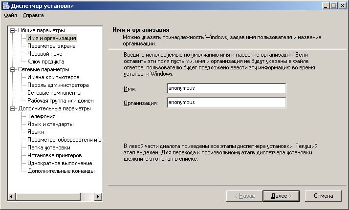 не должно быть пользователей, вошедших в систему, а сетевые подключения должны быть отключены. Все данные о пользователе записываются в соответствующий раздел реестра, и все создаваемые впоследствии пользователи наследуют эти данные.
