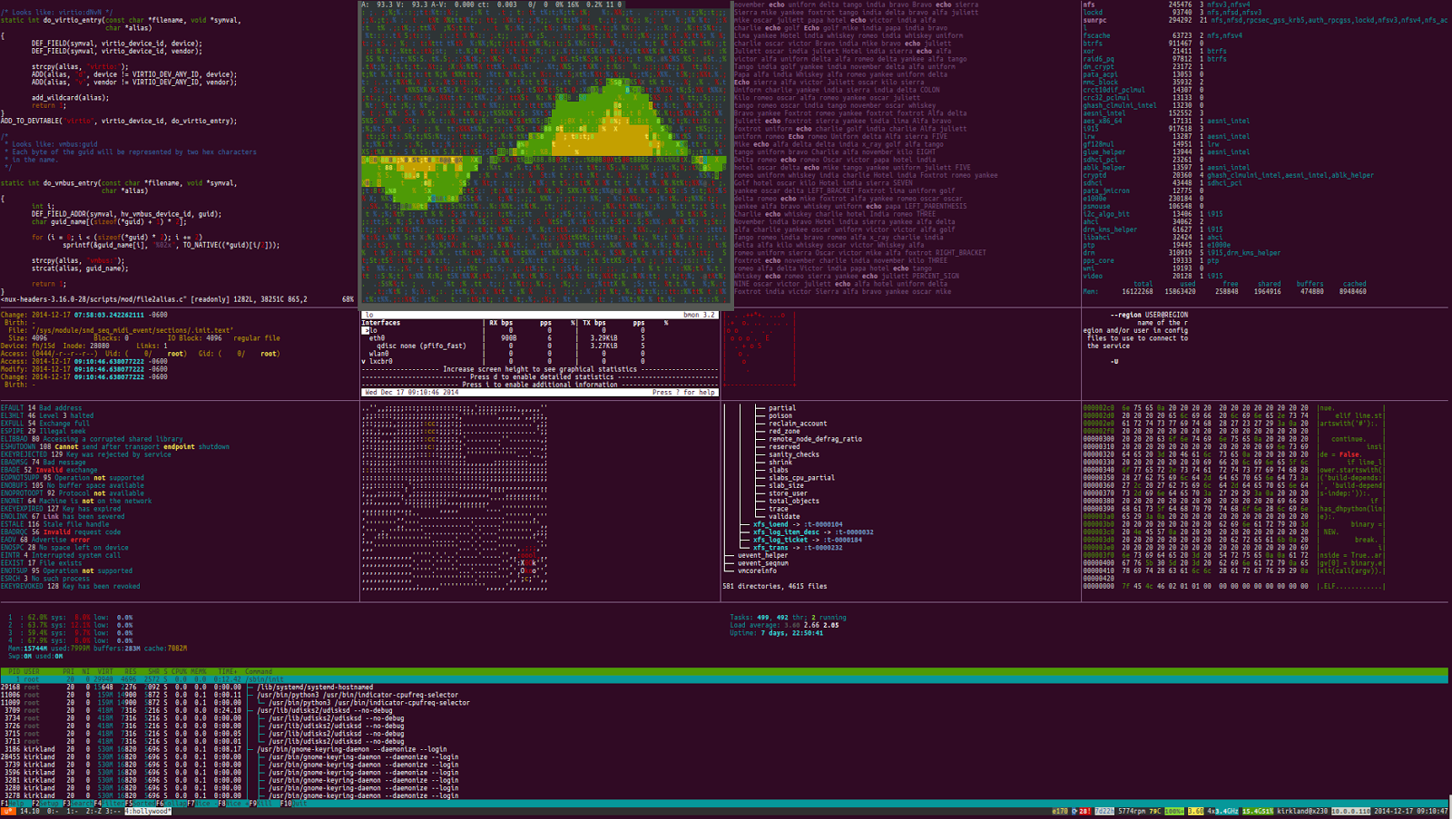 Дастин Киркленд (Dustin Kirkland), руководящий разработкой проекта Ubuntu Cloud, и Кэйс Кук (Kees Cook), бывший главный сисадмин kernel.org и лидер Ubuntu Security Team, ныне работающий в компании Googl над обеспечением защиты ChromeOS, подготовили (http://blog.dustinkirkland.com/2014/12/hollywood-technodrama...) пакет Hollywood Technodrama (https://launchpad.net/hollywood), который симулирует работу хакерского консольного интерфейса в стиле голливудских фильмов. В пакете используются штатные открытые утилиты и программы, такие как htop, hexdump, apg, man, stat, tree, speedometer, jp2a, bmon, sshart, cmatrix и т.п., которые в сочетании с мозаичной компоновкой окон, реализованной при помощи консольного оконного менеджера Byobu (http://byobu.co/) (надстройка над tmux), создают достаточно эффектный интерфейс. | ||