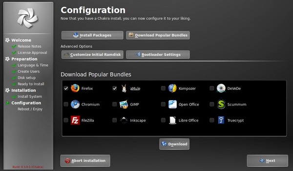 Есть две редакции: Minimal и Full. Минимальная содержит лишь рабочее окружение KDE, браузер, текстовый редактор, проигрыватель и еще что-то. Дальше пользователь сам устанавливает приложения по вкусу. В полной редакции все что надо имеется и даже больше.