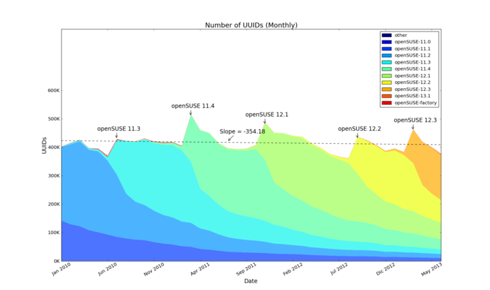 > к репозиториям с обновлениями, активная аудитория дистрибутива последние несколько лет держится на уровне 400 тысяч пользователей. Для Fedora подобная статистика недоступна