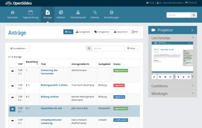 Current stable version: OpenSlides 2.0 (2015-04-18)