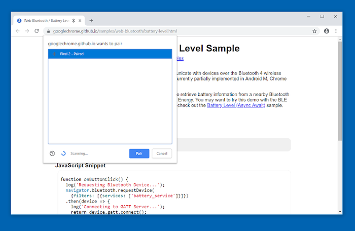 "Для платформы Windows 10 активирован API Web Bluetooth, ранее доступный только на платформах Android, Chrome OS и macOS."