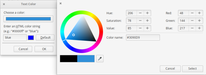>>> Добавлена возможность выбора произвольных цветов в окне написания сообщения и для тегов, не ограничиваясь предлагаемой таблицей 10x7 цветов