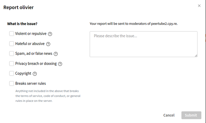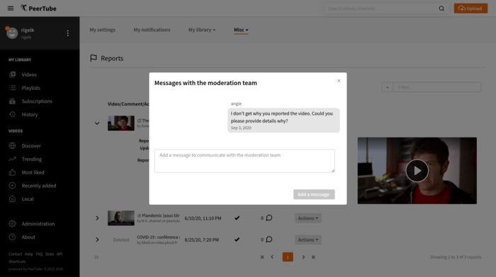• Расширены средства модерирования. Кроме информирования модераторов о проблемных видео, добавлена возможность отправки уведомлений о нарушающих правила учётных записях и комментариях.