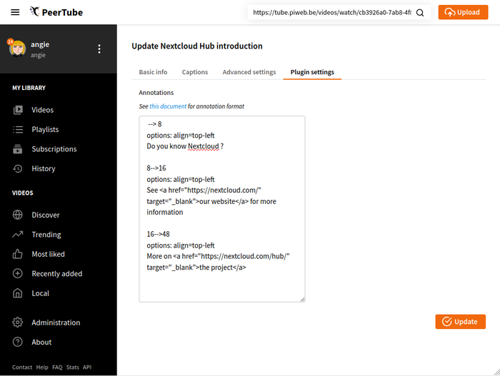 • Добавлен плагин для добавления аннотаций к видео. При помощи указанного плагина пользователь может указать информацию, которая будет показана в определённое время воспроизведения видео.