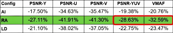 > использование кодека AV2 позволило добиться снижения битрейта на 32.59% по сравнению с кодеком AV1 при аналогичном уровне качества