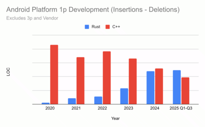 "Использование кода на Rust при разработке системных компонентов Android началось в 2020 году"