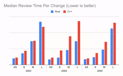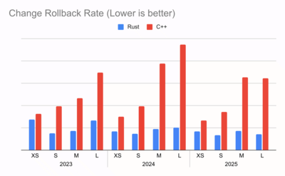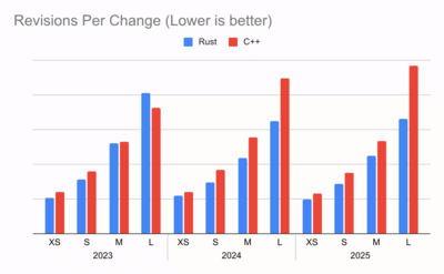 В целом получается по важным производственным параметрам Rust "вроде не хуже" C++. Других выводов учитывая разные подходы в языках тут не сделать, т.к. структура издержек при разработке у них тоже возможно разная и не факт что выбранные показатели равноценны для обоих.