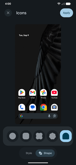 - Реализована расширенная тёмная тема оформления (Expanded Dark Theme), которая автоматически инвертирует цвета в приложениях, не предоставляющих тёмную тему оформления. Необходимость инвертирования определяется отдельно для каждого приложения на основе атрибута isLightTheme. Инвертирование применяется к элементам интерфейса на базе Android Views, Composables и WebViews, но не используется для приложений с собственными движками отрисовки, например, на базе фреймворка Flutter.