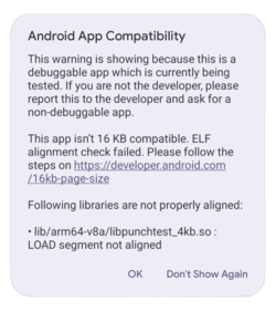 - Реализован вывод предупреждения об отсутствии в отлаживаемом приложении выравнивания памяти по границе страниц, размером 16 КБ. В будущем для отдельных архитектур ожидается переход на использование страниц размером 16 КБ вместо 4 КБ, что позволит повысить производительность программ, интенсивно работающих с памятью.
