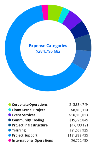 Нет. Куда там деньги тратить? На что? Зарплаты майнтейнерам подсистем, немного на инфраструктуру, вот и все траты. За остальное корпорации башляют напрямую, платя зарплаты своим разработчикам.