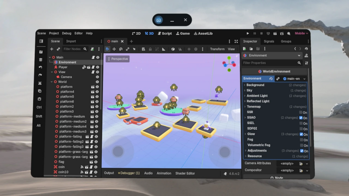 - В редактор Godot XR добавлена поддержка устройств Android XR для упрощения тестирования и отладки проектов для дополненной и виртуальной реальности. Добавлена поддержка спецификации OpenXR 1.1.