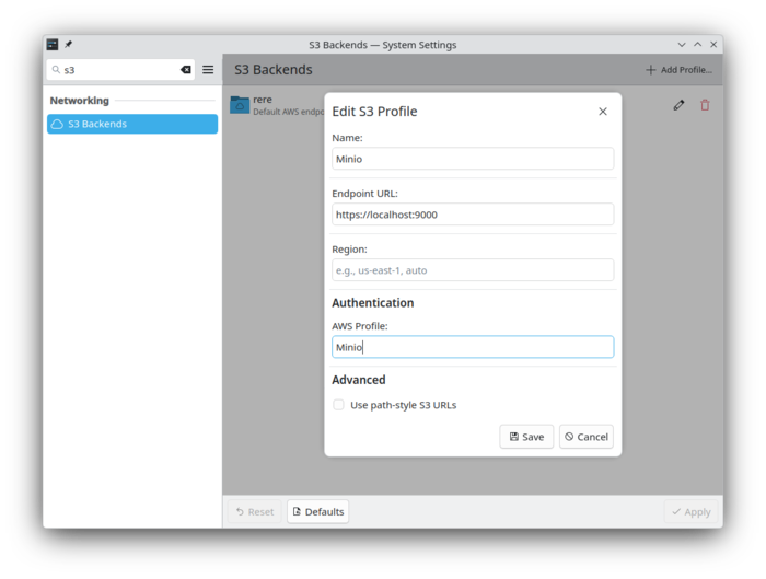• Подготовлен обработчик KIO S3, позволяющий напрямую из Dolphin и приложений KDE работать с файлами, хранимыми в S3-совместимых облачных хранилищах, таких как Amazon S3, Cloudflare R2, DigitalOcean Spaces и MinIO.