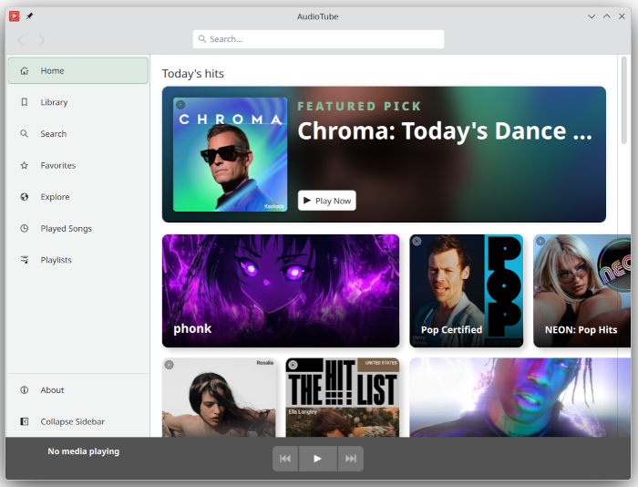 - В Audiotube, приложение для прослушивания музыки с Youtube Music, реализована новая базовая страница, на которой представлена подборка музыки, рекомендованной для прослушивания.