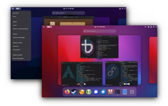 Дистрибутив поставляется в форме монолитного образа, не разделяемого на отдельные пакеты и обновляемого как единое целое. Приложения устанавливаются в формате Flatpak или в форме контейнеров. Для запуска Android-игр задействован Waydroid. В состав входит Steam и подборка компонентов, востребованных любителями компьютерных игр, а также дополнительные драйверы для игровых контроллеров и Wi-Fi. В системные компоненты внесены оптимизации для повышения отзывчивости и улучшения поддержки HDR и VRR. В новой версии: